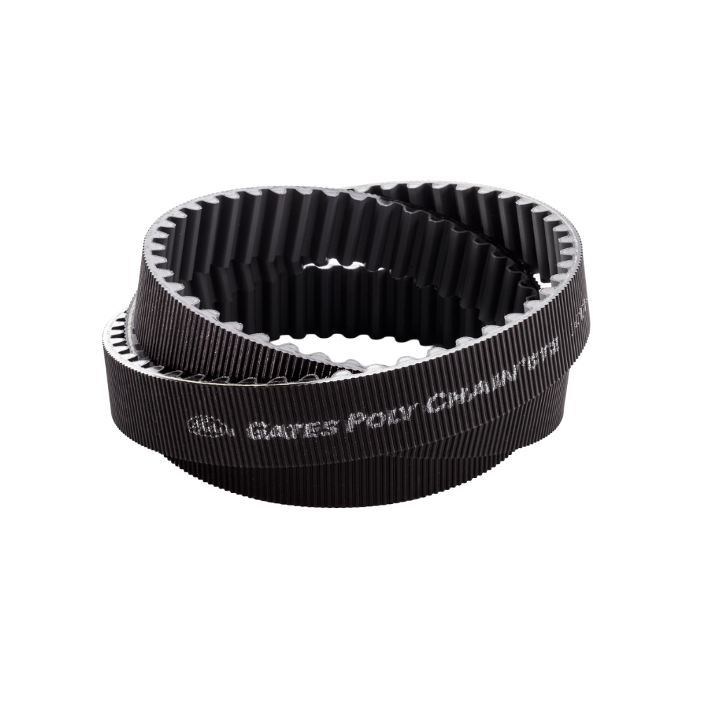 Quiet, lightweight, and clean-running, the hard-wearing Gates® Poly Chain family is renowned for its extraordinary strength and load-carrying capacity. Incorporating either aramid or Gates patented carbon fiber tensile cords for minimal stretch, Poly Chain belts have a curvilinear tooth profile that increases shear strength. A nonslip nylon tooth facing reduces friction and eliminates the need for lubrication.